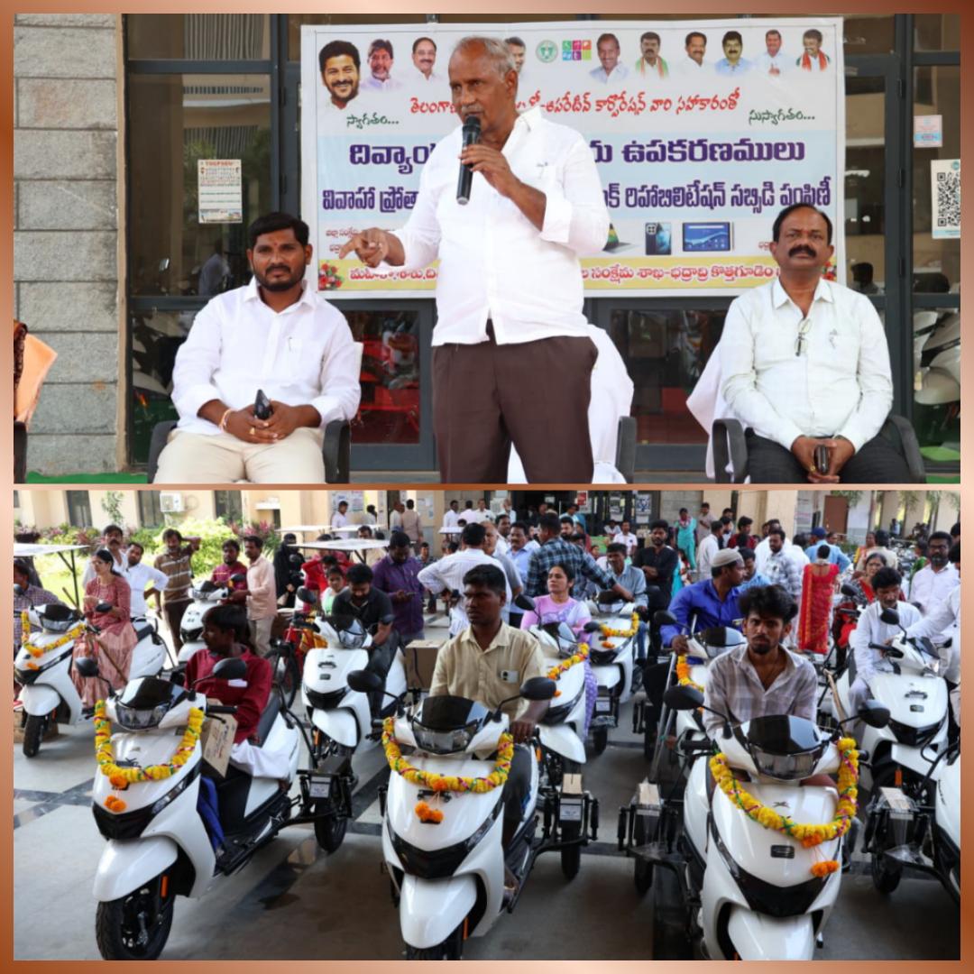 ముఖ్య అతిథిగా హాజరైన కొత్తగూడెం ఎమ్మెల్యే కూనంనేని సాంబశివరావు మాట్లాడుతూ, దివ్యాంగులకు సహాయ ఉపకరణాలు వారి దైనందిన జీవితంలో ఎంతో ఉపయోగపడతాయని, వాటిని జాగ్రత్తగా వినియోగించుకోవాలని సూచించారు. అర్హులైన లబ్ధిదారులకు సి.ఎస్.ఆర్. ద్వారా రెట్రో ఫిట్టెడ్ మోటార్ వెహికల్స్ (స్కూటీలు) అందించేందుకు చర్యలు తీసుకుంటామని తెలిపారు.